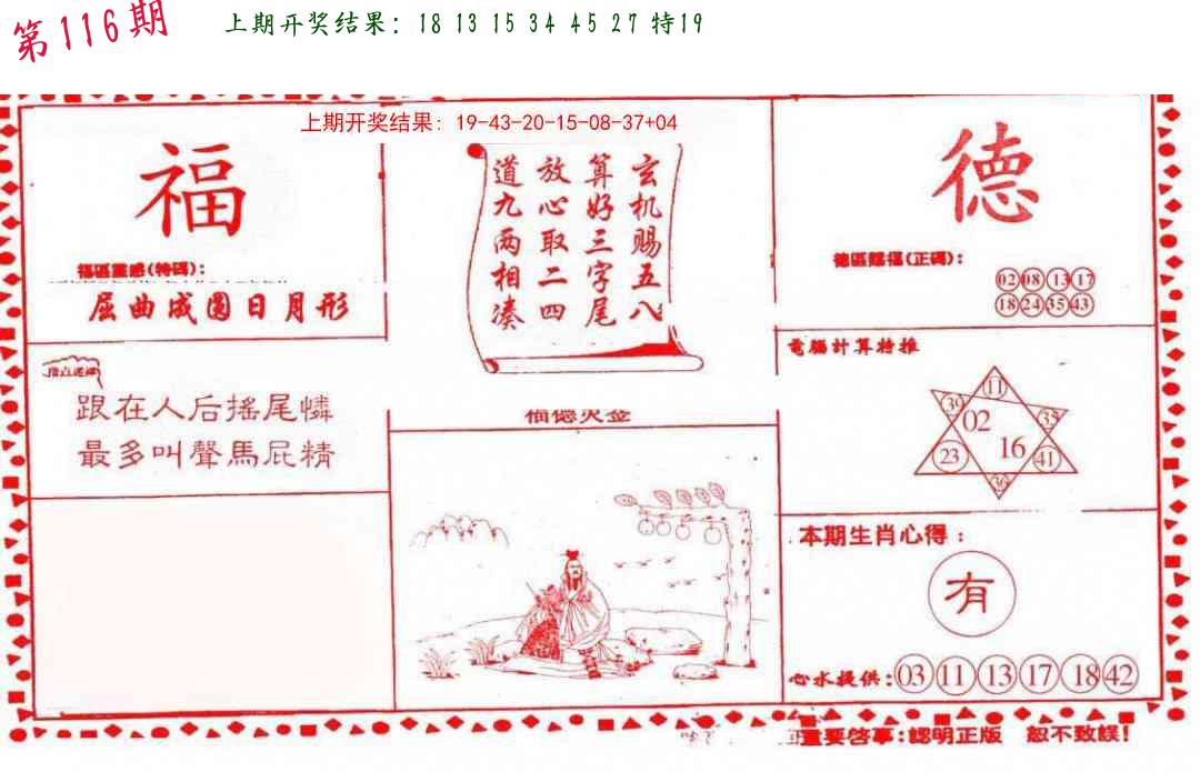 1111期【隔壁老胡18码】开43猪 03-17-41-45-08-26 |