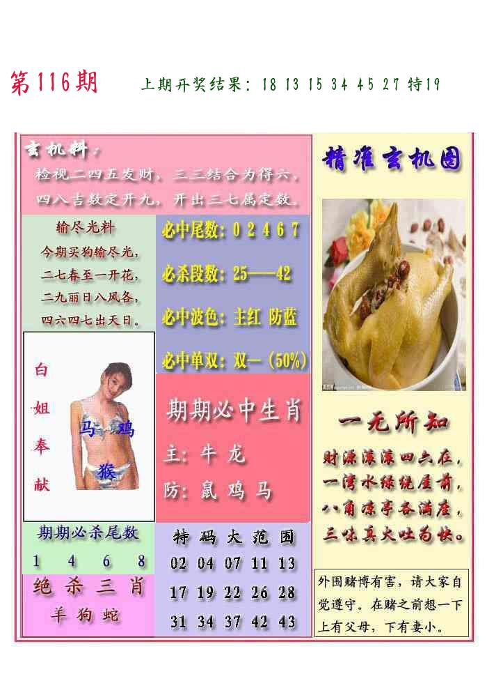 | 1113期:精准单双〖双数〗开:43猪错 | |