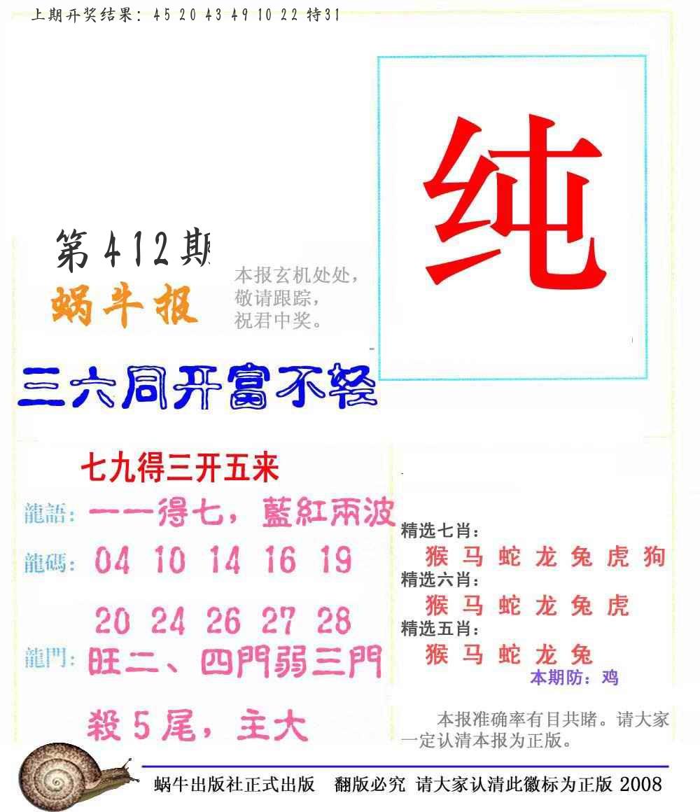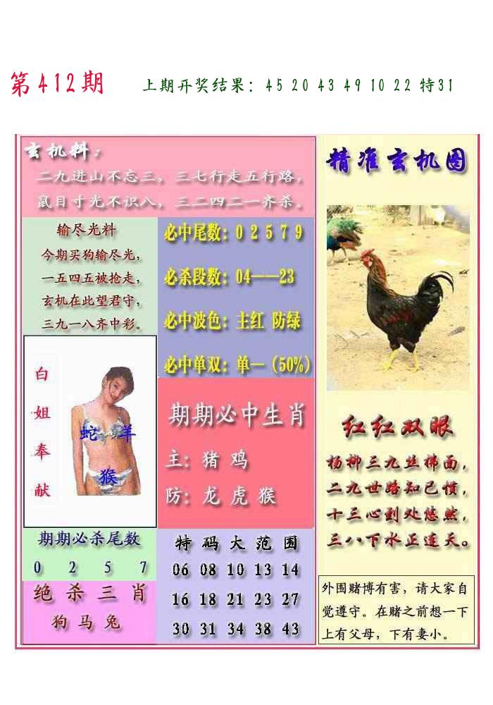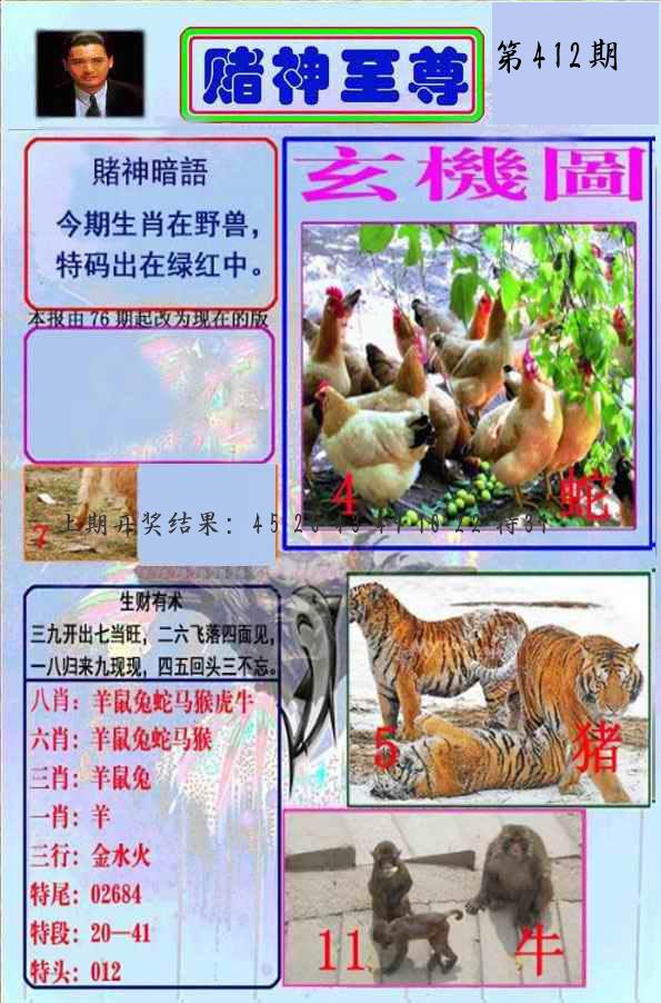 | 0411期:逼哥四尾八码 开31鼠对 | |