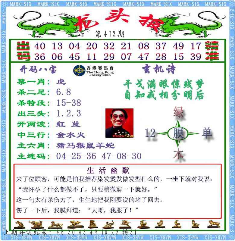 | 0411期:单双四肖八码 开:31鼠错 | |